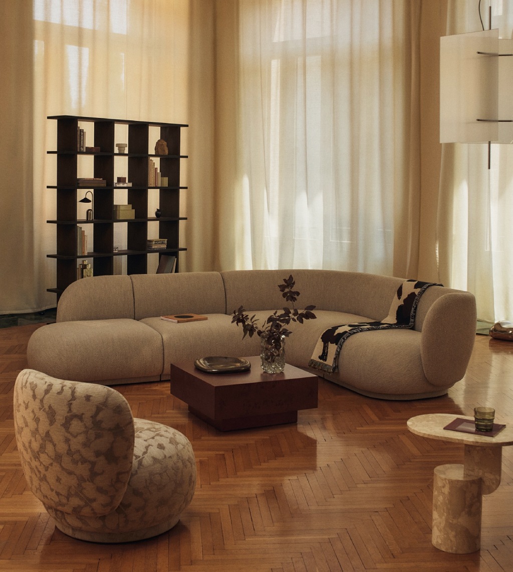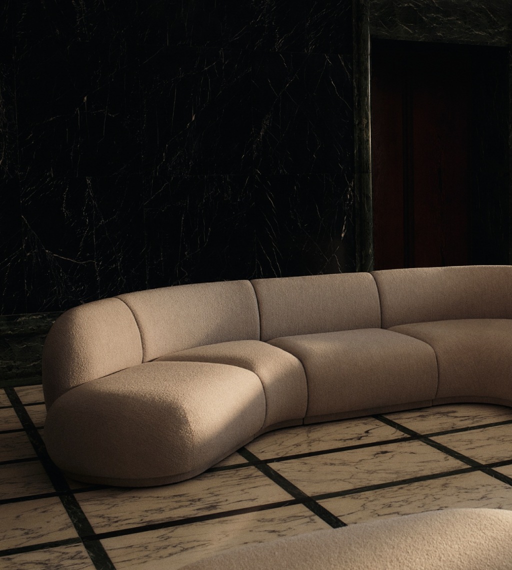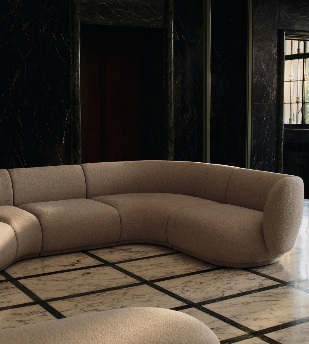 RICO modulinė sofa, akcentuojanti kolekcijos dizaino vertybes, kurios moduliais lengva varijuoti – jungti į įvairias konfigūracijas: nuo kompaktiškų namų erdvių iki viešbučių vestibiulių ar biurų laukiamųjų. Siūlomas platus audinių spektras leidžia susikurti unikalų, elegantišką, įvairiausiuose kontekstuose derantį baldą.