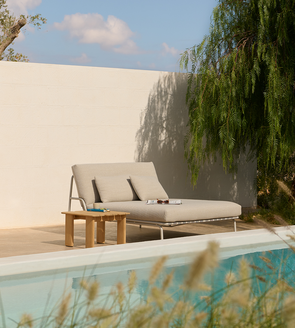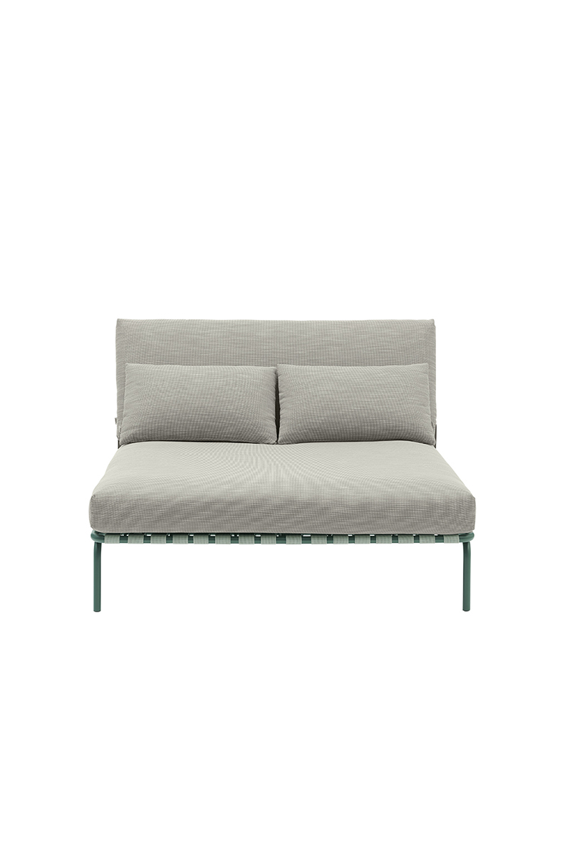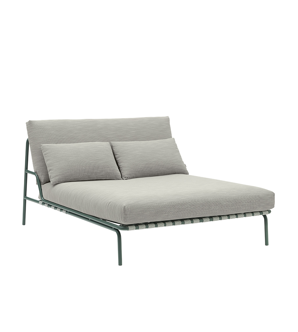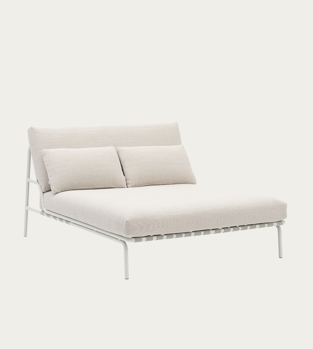 SETTLE lauko baldų serija – ideali poilsio platforma, kviečianti mėgautis komfortu ir džiaugtis geru oru įvairiose lauko erdvėse. Vizualiai lengvas plieno rėmas, ritmiškai apjuostas laikančiųjų diržų, ir subtilūs akcentai leidžia žavėtis baldu iš visų rakursų. Galvanizuotas, milteliniu būdu dažomas plieno rėmas užtikrina atsparumą korozijai ir ilgaamžį baldo naudojimą. Minkštos sėdimosios pagalvės, gaminamos iš specialaus, greitai džiūstančio porolono, vilktos patvariais, lauko sąlygoms skirtais ir lietui atspariais audiniais, todėl minkštaisiais lauko baldais mėgausitės ne vieną sezoną. Papildomai galima užsisakyti apsauginį uždangalą, kuris padės apsaugoti baldus nuo oro sąlygų, kai jie nenaudojami.