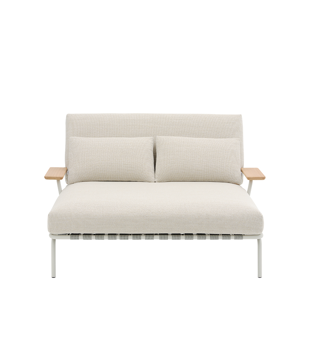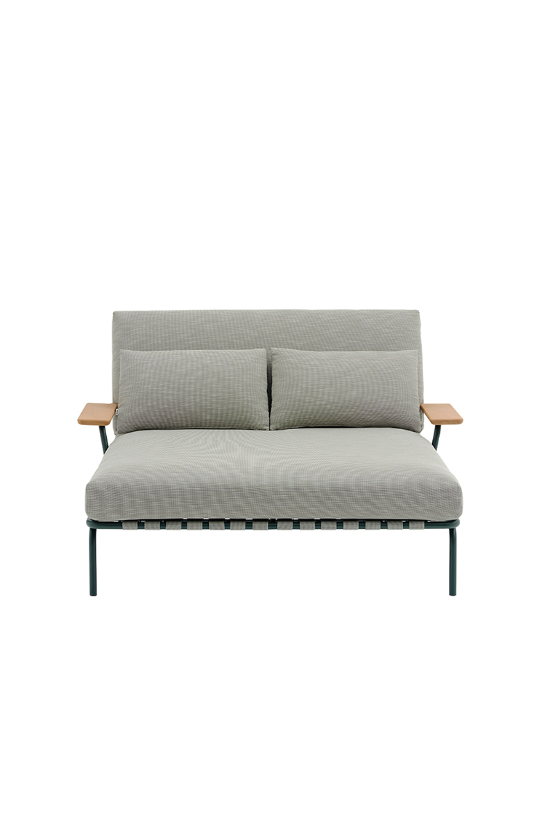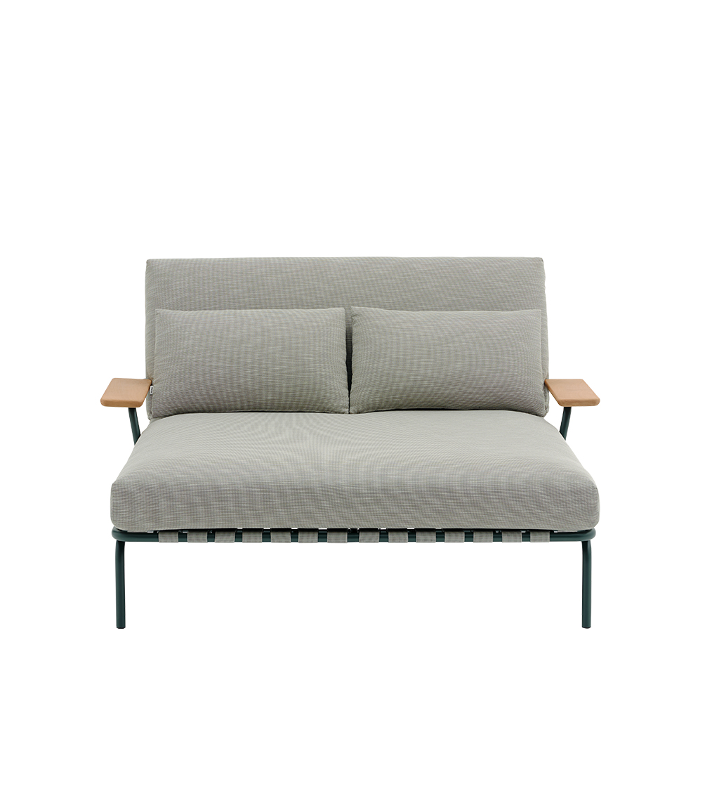 SETTLE lauko baldų serija – ideali poilsio platforma, kviečianti mėgautis komfortu ir džiaugtis geru oru įvairiose lauko erdvėse. Vizualiai lengvas plieno rėmas, ritmiškai apjuostas laikančiųjų diržų, ir subtilūs akcentai leidžia žavėtis baldu iš visų rakursų. Porankiai, gaminami iš patvarios FSC™ sertifikuotos ritininės tiamos medienos – ne tik jaukus vizualinis akcentas, bet ir maloni prisiliesti rankų atrama. Galvanizuotas, milteliniu būdu dažomas plieno rėmas užtikrina atsparumą korozijai ir ilgaamžį baldo naudojimą. Minkštos sėdimosios pagalvės, gaminamos iš specialaus, greitai džiūstančio porolono, vilktos patvariais, lauko sąlygoms skirtais ir lietui atspariais audiniais, todėl minkštaisiais lauko baldais mėgausitės ne vieną sezoną. Papildomai galima užsisakyti apsauginį uždangalą, kuris padės apsaugoti baldus nuo oro sąlygų, kai jie nenaudojami.