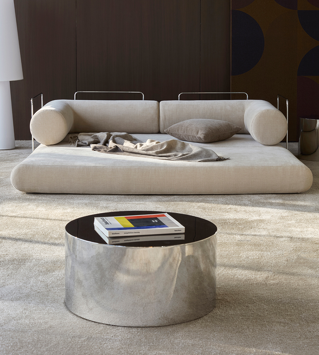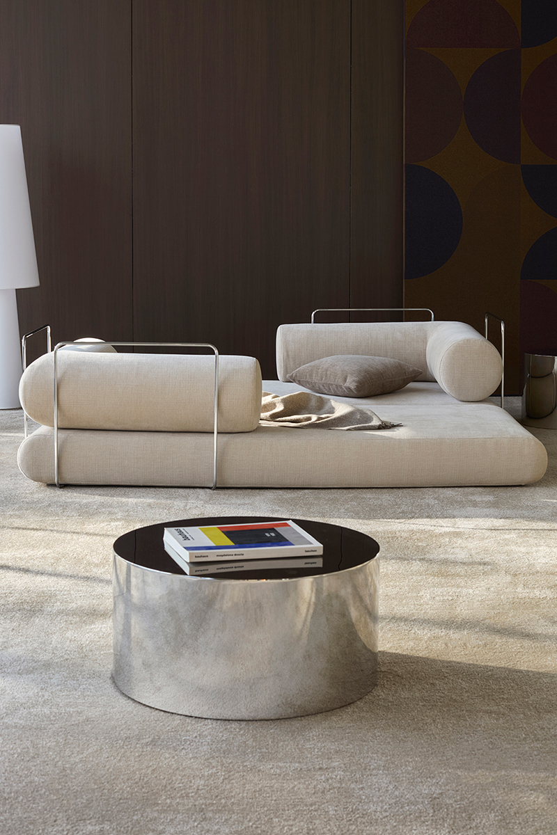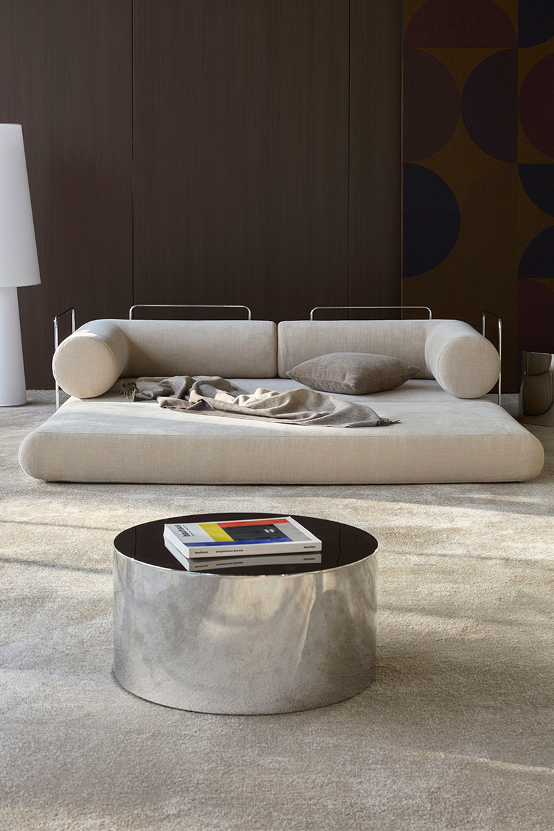 Minkštųjų, modulinių baldų kolekcija CIRCLUS, sukurta šiuolaikiškam gyvenimui – laisva, patogi ir universali. Du savarankiški čiužiniai, sudėti vienas ant kito, suteikia erdvų ir minkštą komfortą sėdint, o nukėlus ir sudėjus juos šalia vienas kito – erdvų miegamąjį paviršių. Mobilūs, cilindro formos atlošai teikia patogią atramą nugarai, o chromuoto plieno rėmas ne tik tvirtai juos prilaiko, bet ir suteikia baldui elegantišką klasikos prieskonį. CIRCLUS paverčia bet kurį kambarį stilinga ir daugiafunkcine poilsio erdve – sukurta bendrauti, atsipalaiduoti bei prireikus suformuoti dvigulę arba dvi viengules lovas nakčiai. Nuvelkami užvalkalai leidžia juos paprastai išvalyti ar pakeisti naujais. Kolekcijoje – dviejų čiužinių modulis, vienvietis arba kampinis atlošas bei chromuoto plieno rėmas.