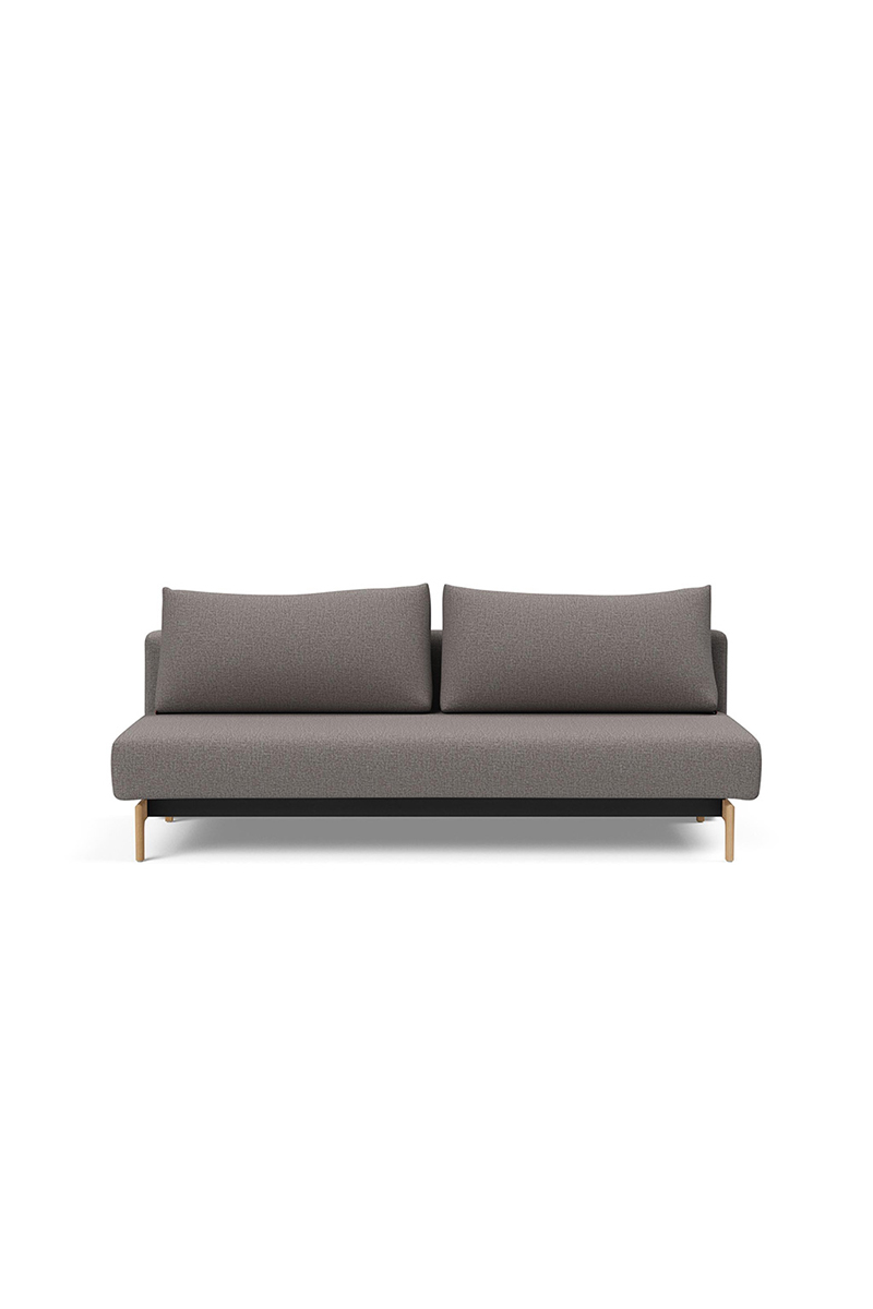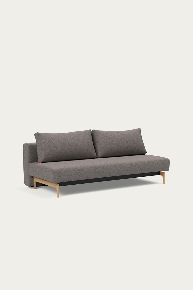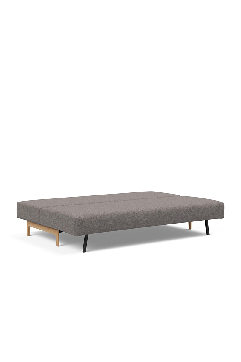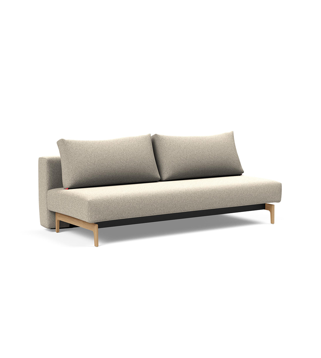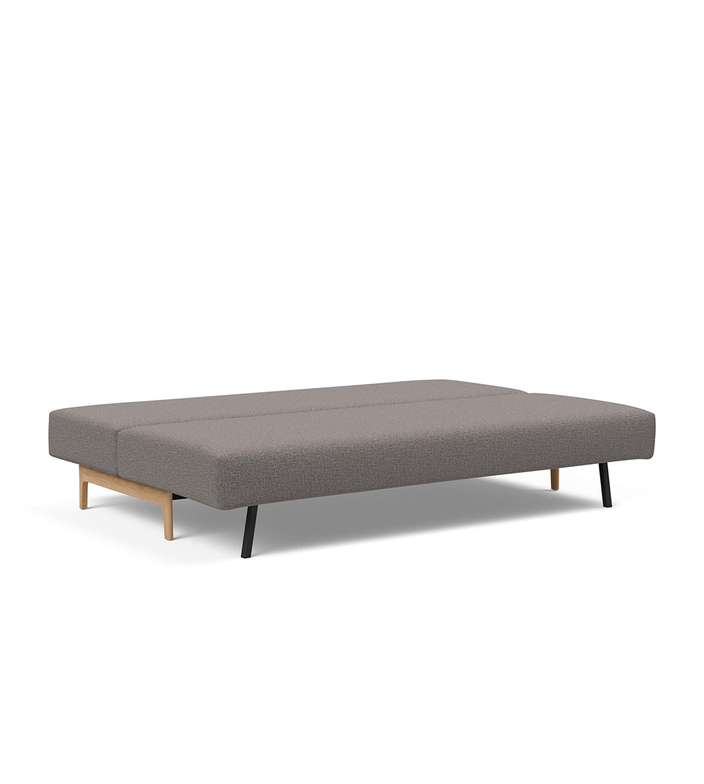 Švaraus ir elegantiško dizaino sofa-lova, puikiai tinkanti nedidelėse gyvenamosiose erdvėse. Čiužinyje integruotos „Pocket“ tipo spyruoklės ir atlošo pagalvės, užpildytos ančių plunksnų mišiniu, leidžia patogiai ilsėtis sėdint. Lakuoto ąžuolo kojelės ir juodo plieno rėmas. Krepšys patalynei. Papildomai galima pasirinkti atramą galvai.