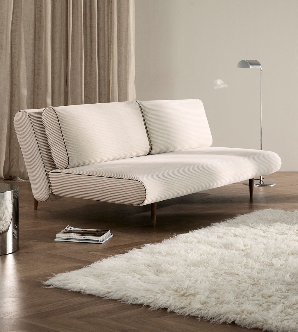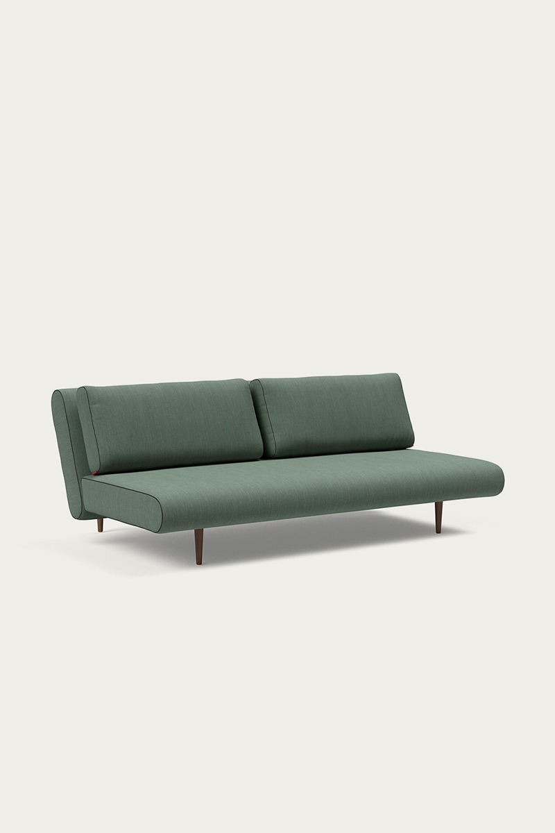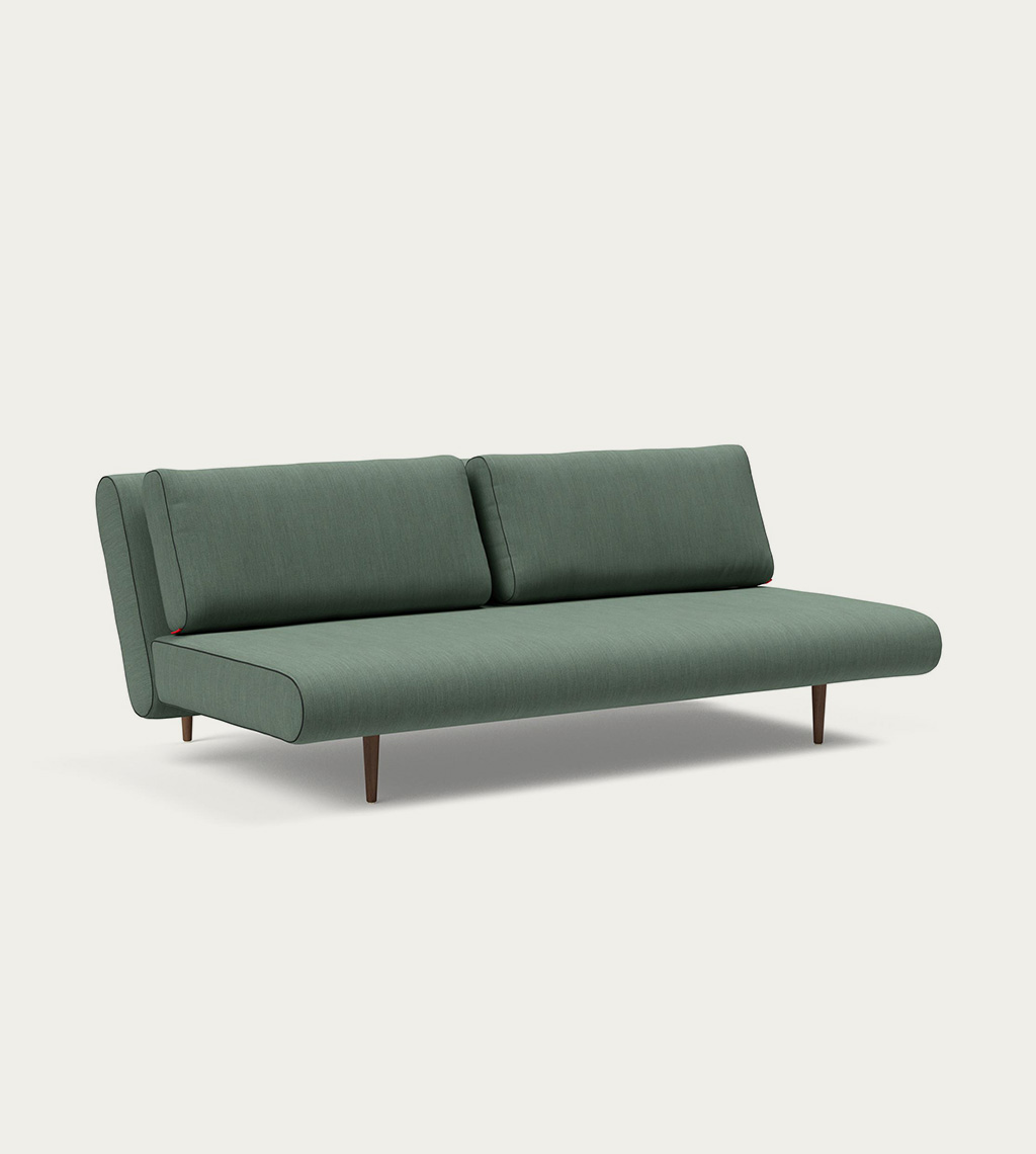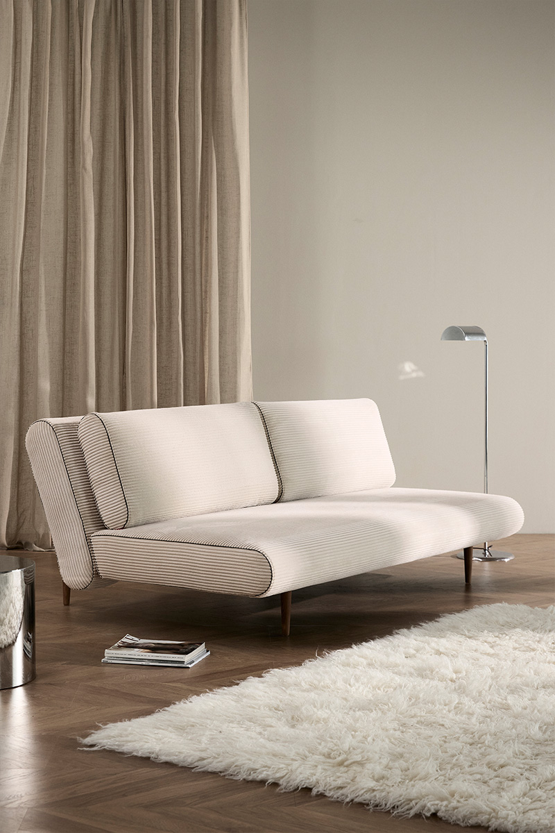 Tai jau klasika tapusio modelio UNFURL modelio transformacija į erdvesnį, poilsiui skirtą baldą. Kelių pozicijų „Clic- clack“ fiksacijos mechanizmas leidžia susirasti patogiausią poziciją sėdint, ilsintis ar miegant. Sėdėjimo ir miego komfortą užtikrina integruotos kūginės spyruoklės. Tamsaus medžio “Styletto„ tipo kojelės.