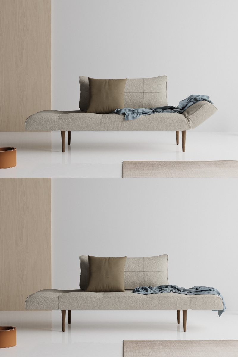 ZEAL – kompaktiška, daugiafunkcinė kušetė su trijų pakopų atlenkiamomis dalimis abejuose galuose ir nefiksuota atlošo pagalve. Baldas puikiai tiks poilsiui dienos metu, o prireikus tarnaus, kaip svečio lova. Čiužinyje integruotos „Pocket“ tipo spyruoklės ir tvirtas metalinis rėmas. Jūsų pasirinkimui – tamsinto medžio arba lakuoto ąžuolo elegantiškos kojelės.